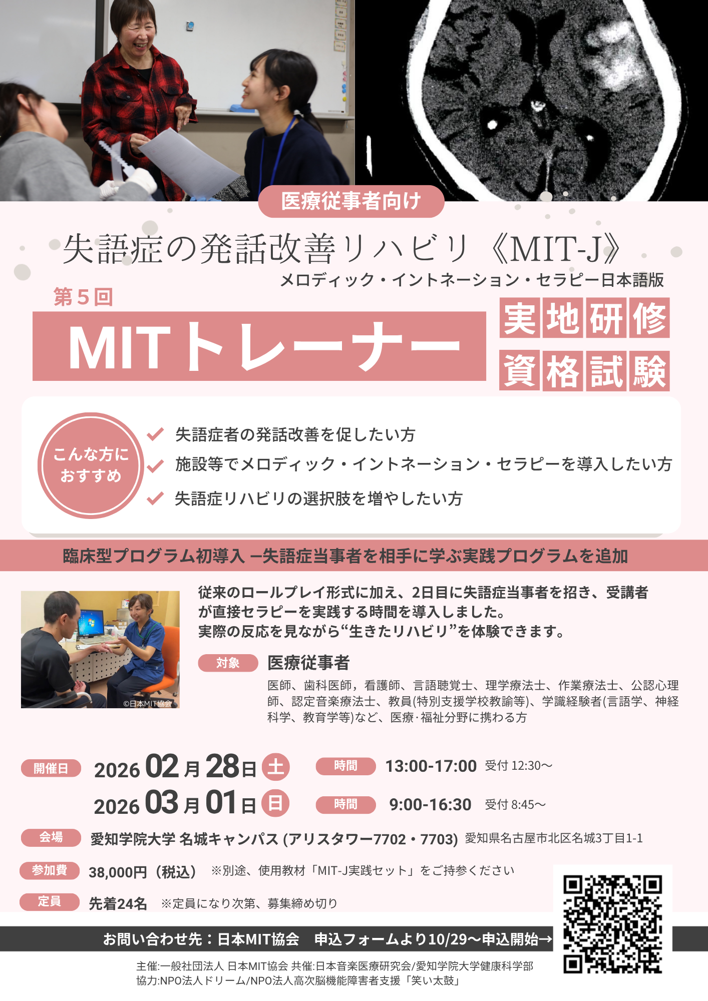 - ◆主催:一般社団法人 日本MIT協会 共催:日本音楽医療研究会/愛知学院大学健康科学部